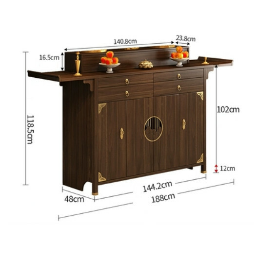 爆款輕奢佛龕 供桌佛臺 財神爺佛櫃 中式立櫃帶門神龕【實木款】【胡桃色】供桌 188x48x118.5cm
