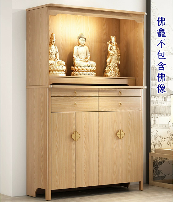 爆款輕奢佛龕 供桌佛臺 財神爺佛櫃 中式立櫃帶門神龕【實木款】原木色119x48x188.5cm