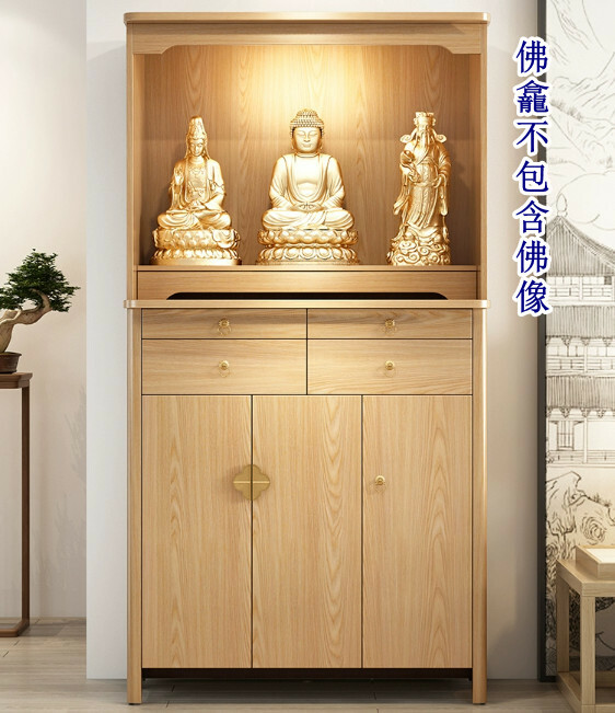 爆款輕奢佛龕 供桌佛臺 財神爺佛櫃 中式立櫃帶門神龕【實木款】原木色98.5x48x188.5cm