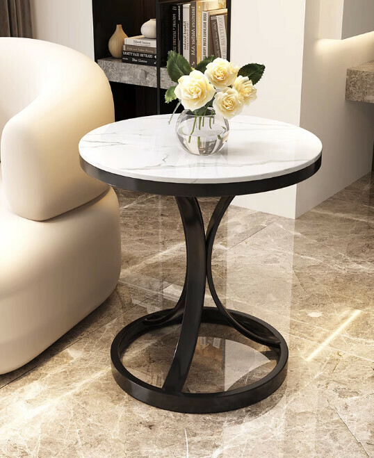爆款輕奢意式岩板茶几(黑色架:直徑50cm【灰色】)