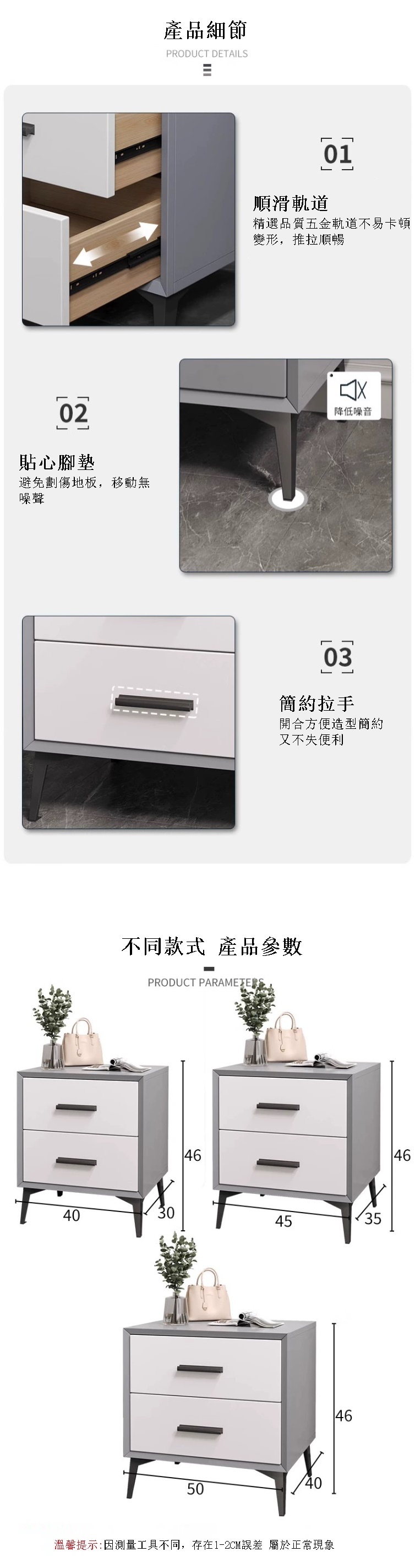 爆款輕奢風簡約床頭櫃 整裝(組合款兩件 45*35*46cm極簡灰色+白抽)