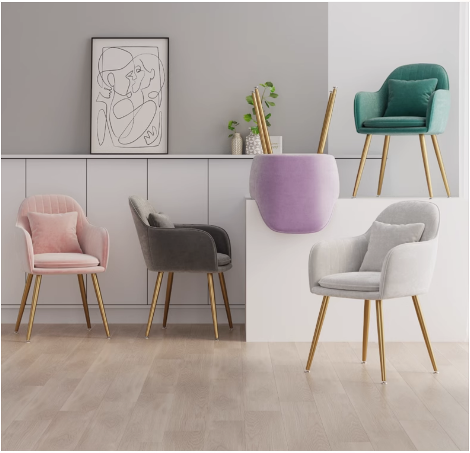 爆款輕奢絨布軟包靠背扶手餐椅(綠色+抱枕-黑腿)(尺寸:83*47CM)