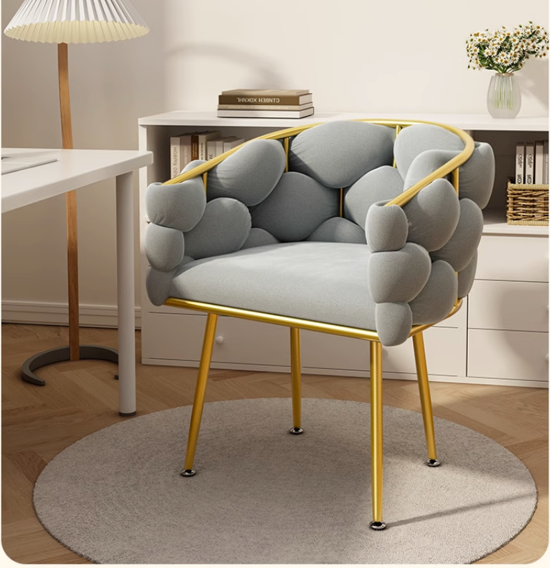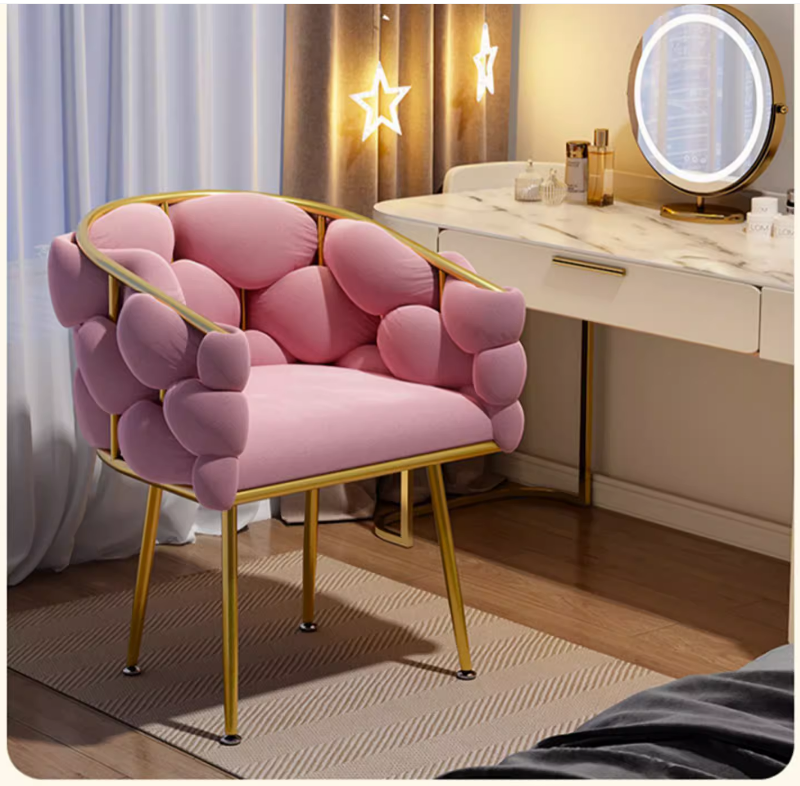 爆款輕奢絨布軟包靠背扶手餐椅(粉色+抱枕-金腿)(尺寸:83*47CM)