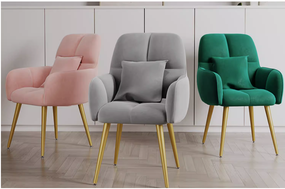 爆款輕奢絨布軟包靠背扶手餐椅(紫色+抱枕-金腿)(尺寸:83*47CM)