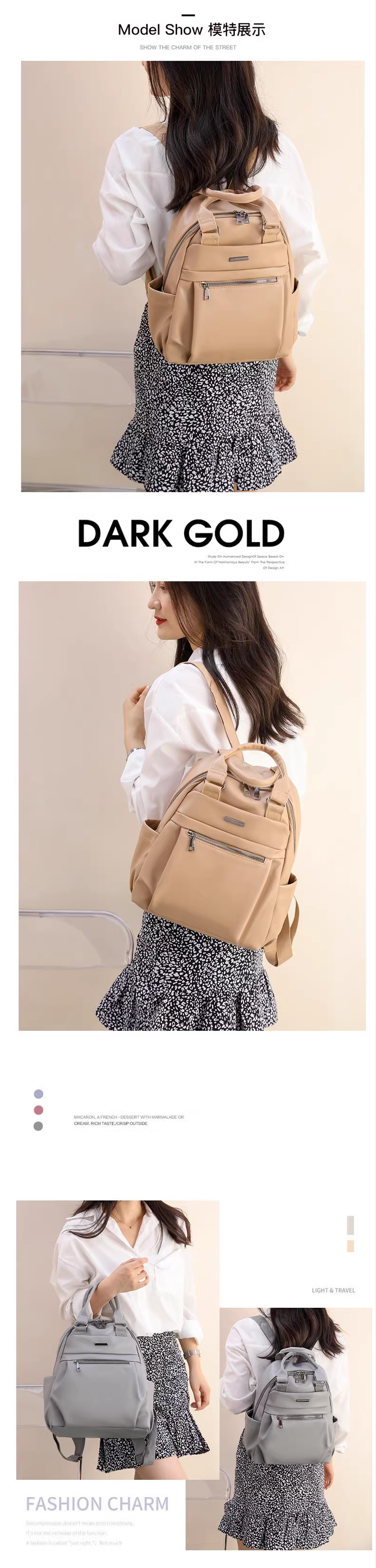 爆款輕便雙肩包女 媽媽包 旅行休閒包包多功能 【黑色】