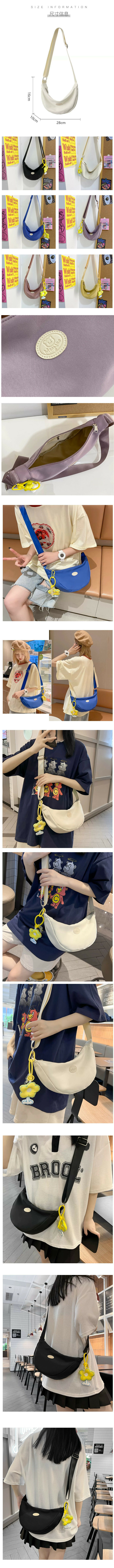 爆款輕便布包斜挎包 單肩小背包(藍色【帶小黃花掛件】)