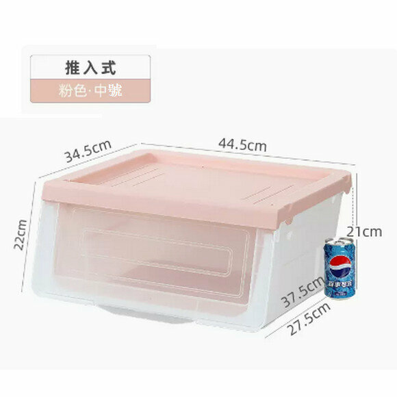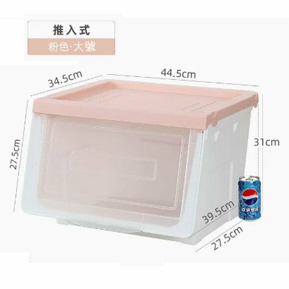 爆款客廳收納盒【特大號54L透明粉(升級加厚 推入式)】