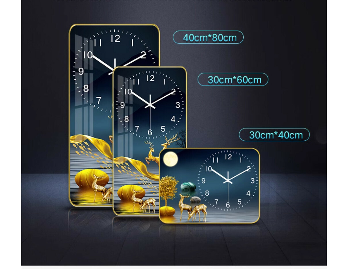 爆款客廳挂墻鐘錶(【晶瓷畫面】-吉祥麋鹿 中號【30*60cm】)