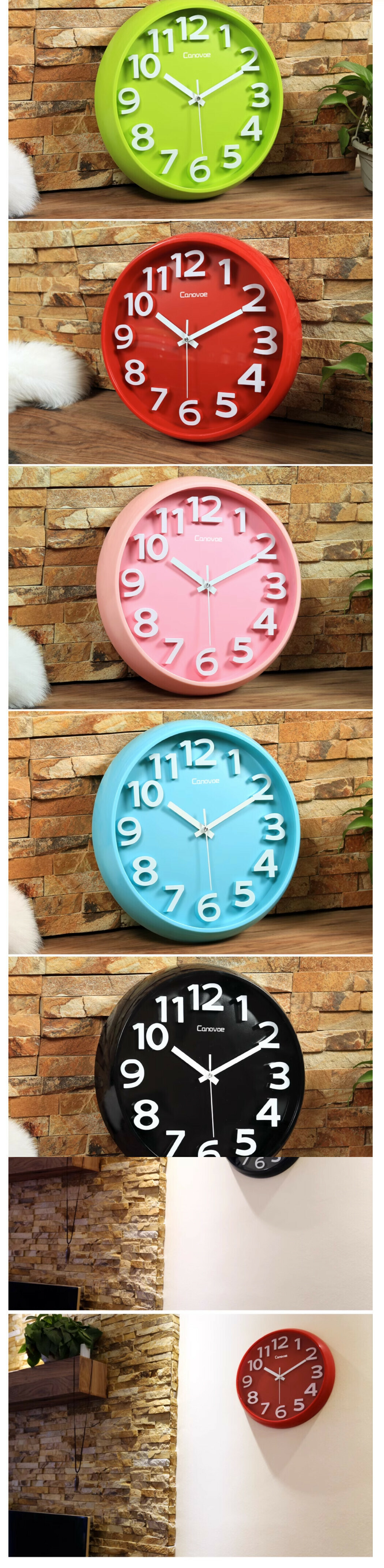 爆款客廳挂墻鐘錶(紅色 14英寸(直徑35.5cm))