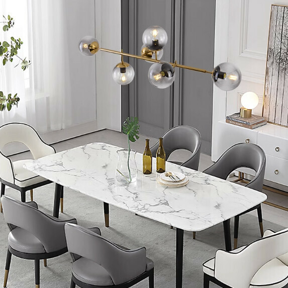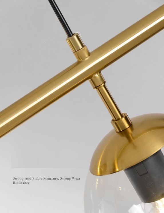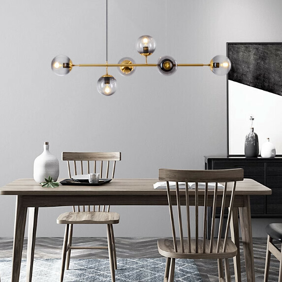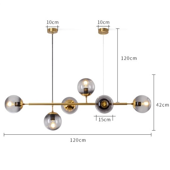 爆款長橫桿魔豆分子天花吊燈(6頭黑色煙灰玻璃長桿款)