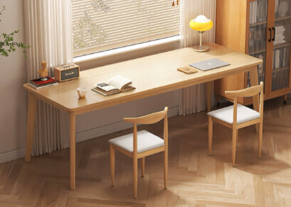 熱推長條電腦桌(180*60*75cm原木色)【一桌兩椅】