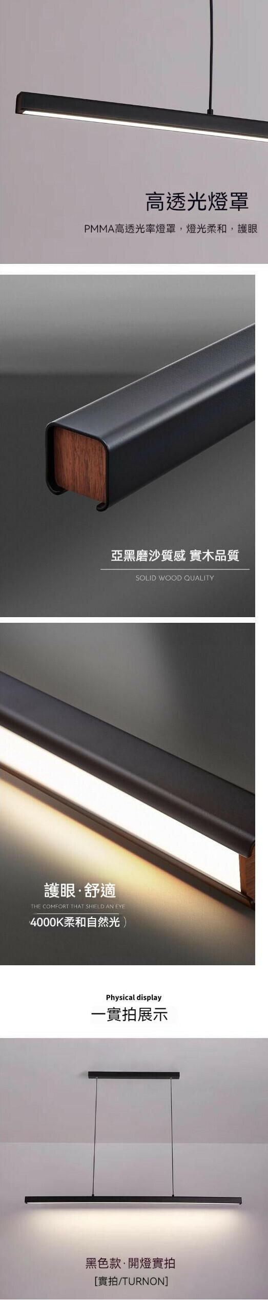 爆款長條輕奢餐廳吊燈(黑色80cm)【LED三色變光】