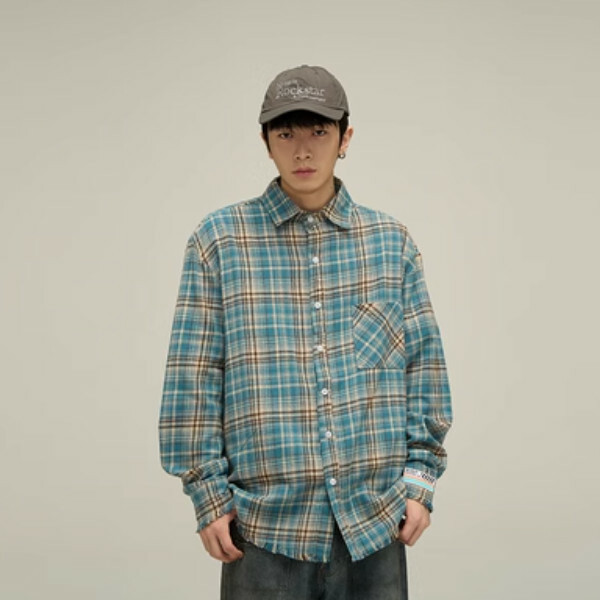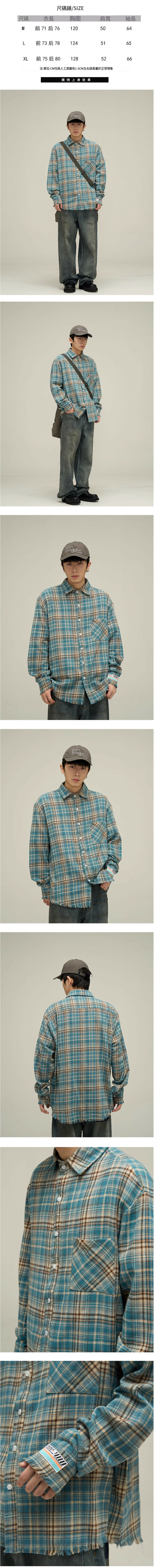 爆款寬鬆長袖格紋襯衫【藍色M-XL碼,下單後與客服確認發貨尺碼】