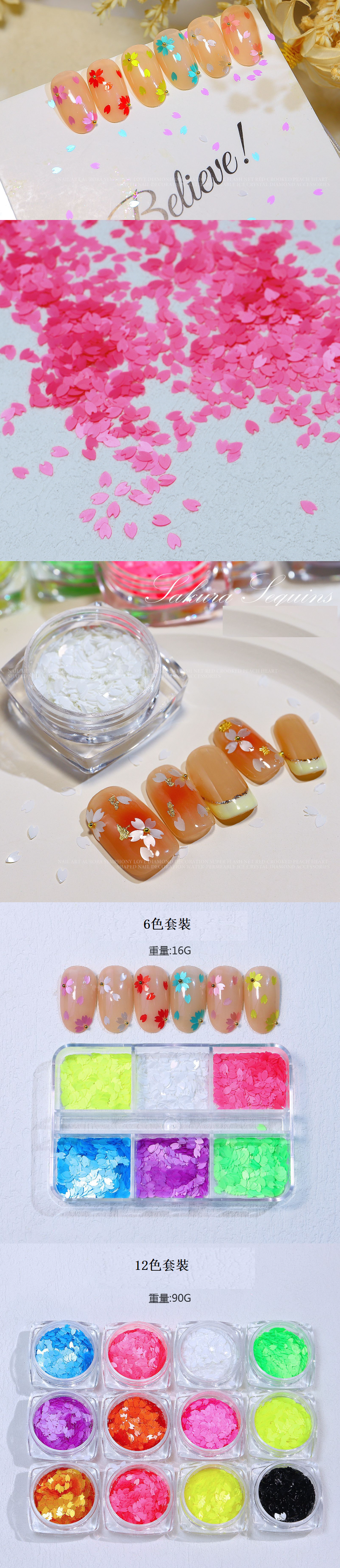 爆款美甲櫻花瓣亮片套裝(6色6格裝)