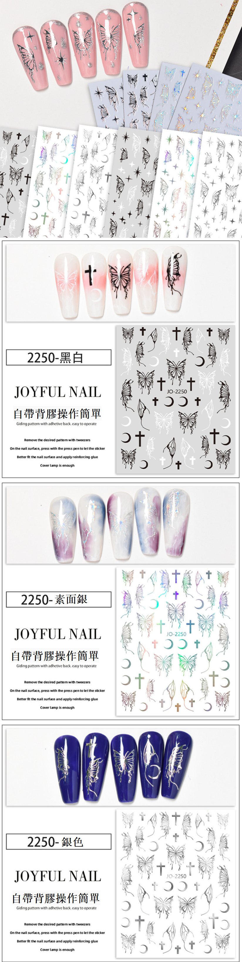 爆款美甲金屬色蝴蝶結貼紙(2250銀色)