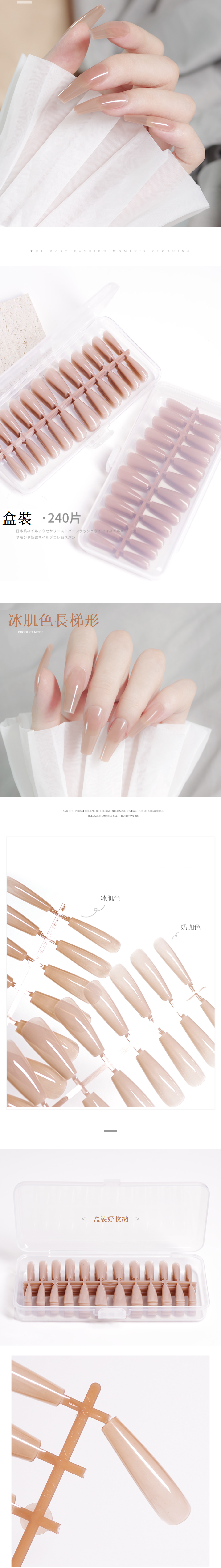 爆款美甲指甲貼片 冰肌色長梯形240片