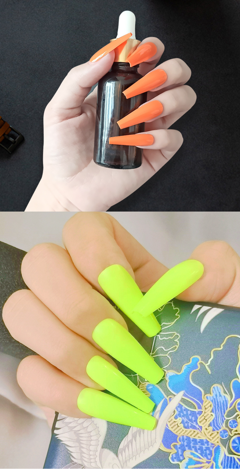 爆款美甲 橘黃色超長款芭蕾穿戴美甲JP1169-Y7#(光面膠水款)