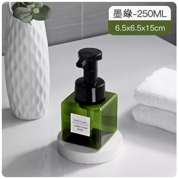 爆款手動按壓式打泡器(250ml透明墨綠【起泡瓶】)