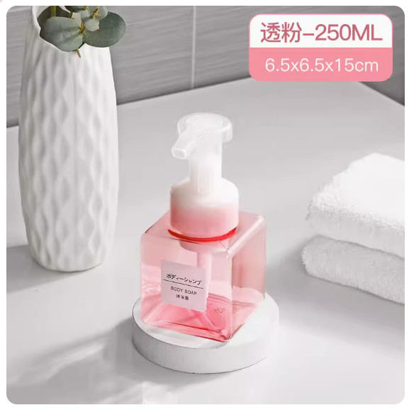 爆款手動按壓式打泡器(250ml透明粉色【起泡瓶】)