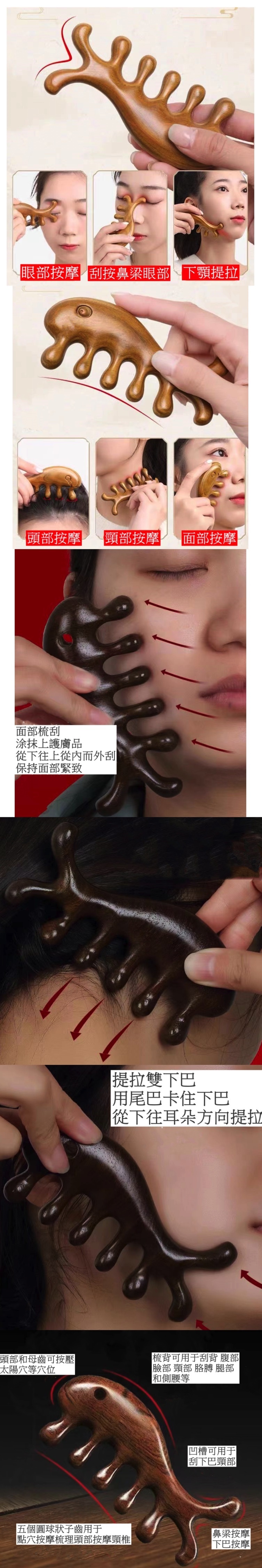 爆款按摩頭療金絲檀木梳 頭部經絡五齒梳(海豚梳布袋裝-主圖片款隨機1個)