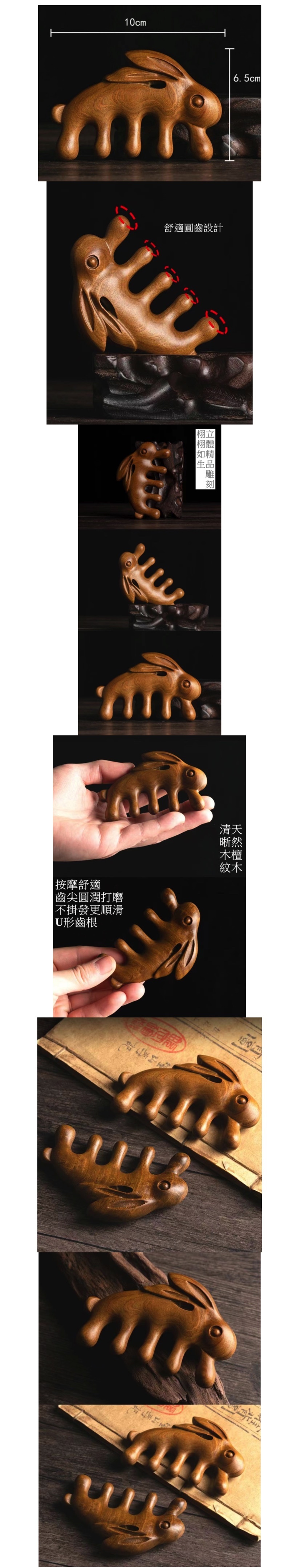 爆款按摩頭療金絲檀木梳 頭部經絡五齒梳(玉兔梳布袋裝-主圖片隨機1個)