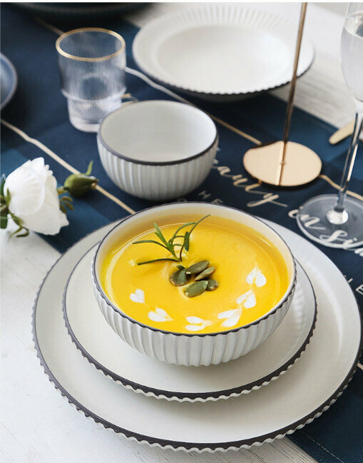 爆款啞光色釉陶瓷麵碗(折紋餐具-5.8寸白色麵碗)