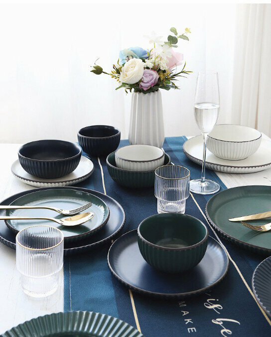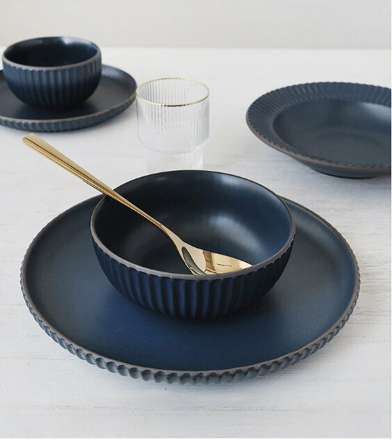 爆款啞光色釉陶瓷盤(折紋餐具-10寸白色大圓盤)