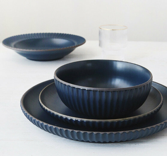 爆款啞光色釉陶瓷盤(折紋餐具-12.6寸白色長方盤)