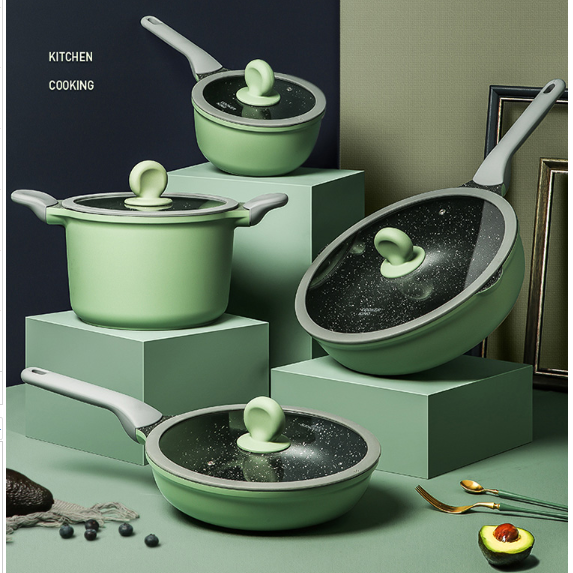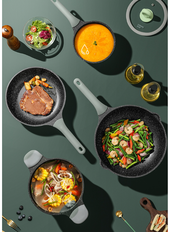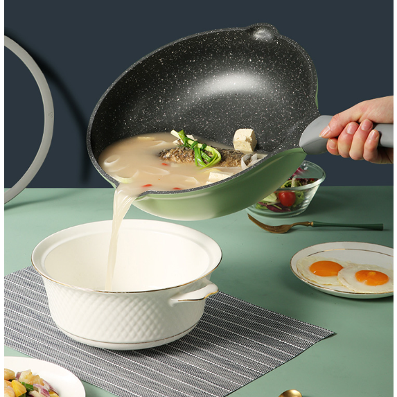 爆款麥飯石不粘鍋套餐(兩件套炒鍋32CM+湯鍋22CM+帶蓋)