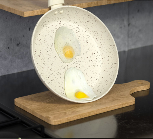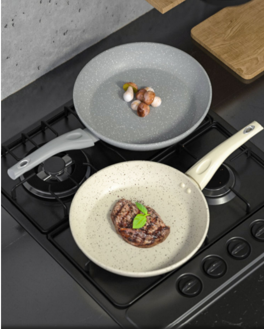 爆款麥飯石平底鍋不粘鍋小煎鍋煎蛋鍋電磁爐專用(米白色)28cm
