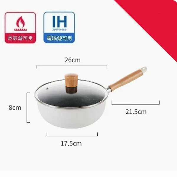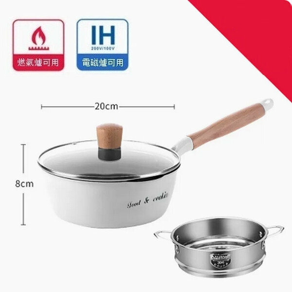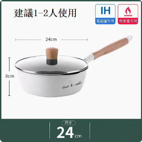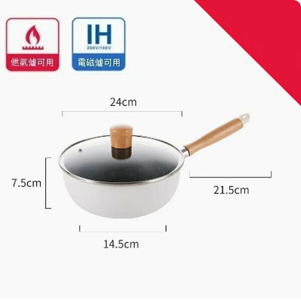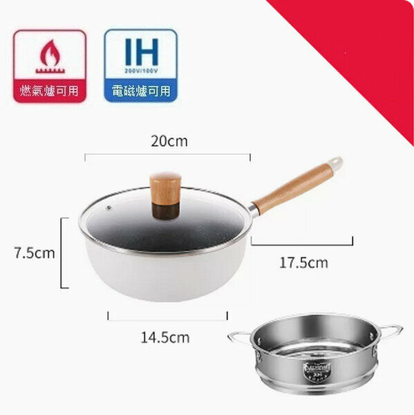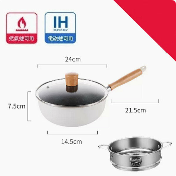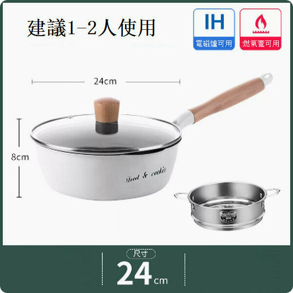 爆款麥飯石小炒鍋不沾平底鍋【白色帶導流口字母款24cm+蓋+蒸籠】