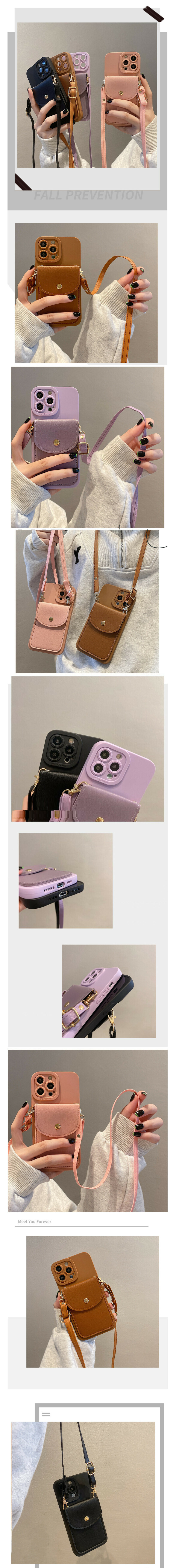 爆款手機殼適用蘋果13promax/iPhone14【棕色卡包+皮質斜挎】(下單後聯絡客服確認手機型號)