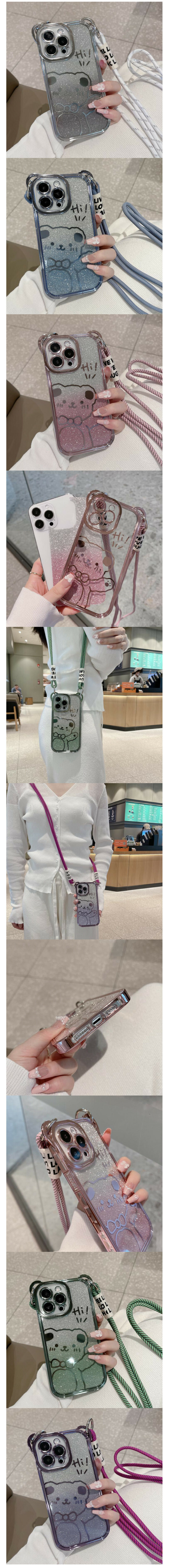 爆款手機殼適用於iPhone14蘋果13promax【香檳金】+漸變閃粉紙+尼龍掛繩(下單後聯絡客服確認手機型號)
