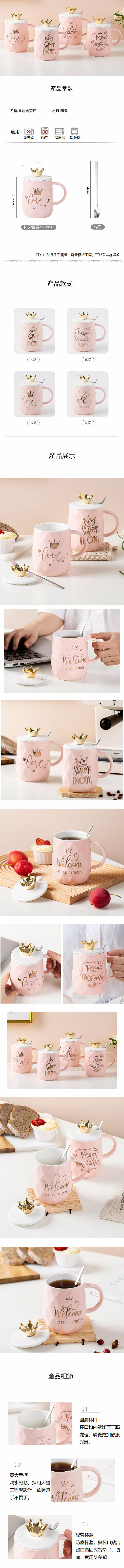 爆款(1個裝) 皇冠馬克杯-(粉紅色皇冠杯子C款-帶蓋勺)