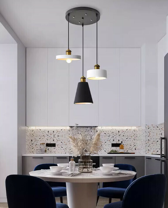 爆款現代工業天花吊燈(3頭圓盤BCD白橙白)