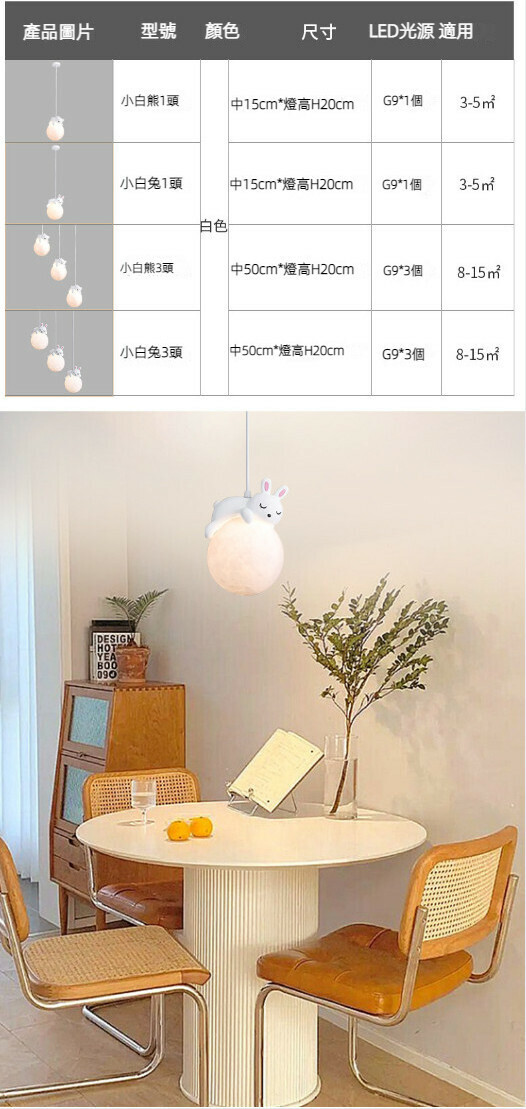 爆款現代簡約吊燈(小白兔1頭)【LED三色變光】