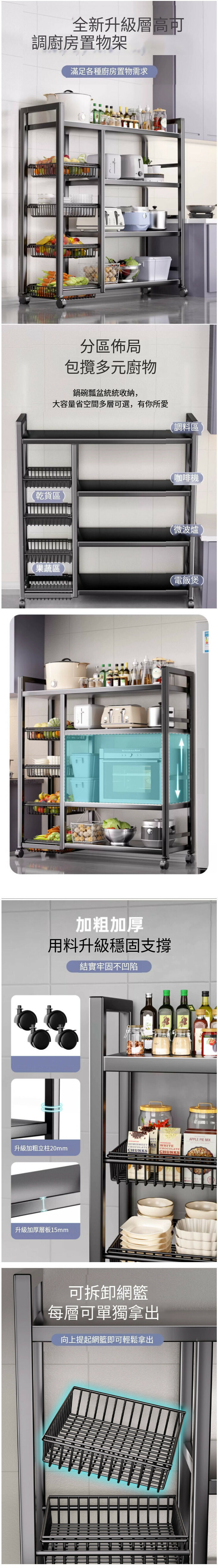爆款可移動置物架 多用途收納架【墨玄風三層三網】長62負重100磅】