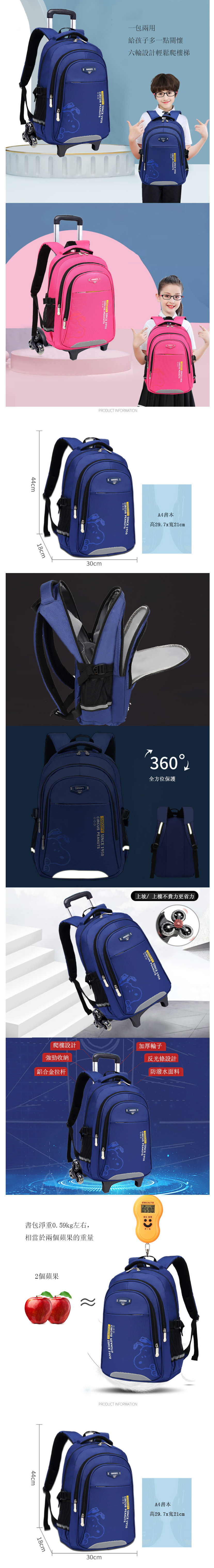 爆款多用途拉桿背包雙肩包(玫紅)(平行進口)