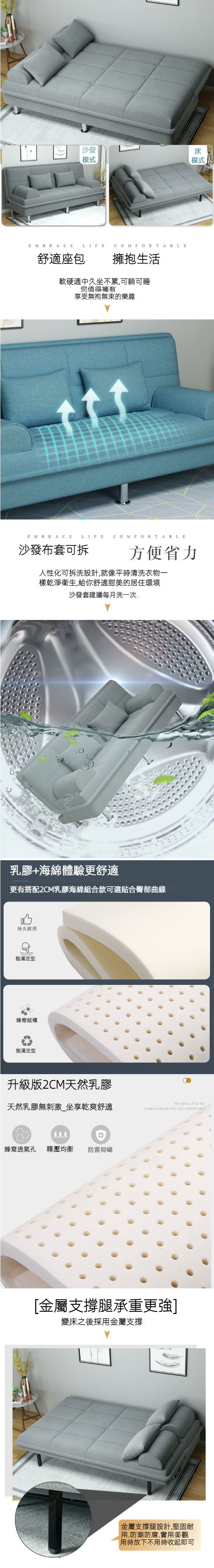 爆款多功能折疊兩用布藝沙發床(淡藍色-3D面料)(【乳膠款】可拆洗1.8米長+2扶手2腰枕)