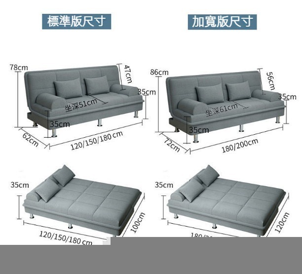 爆款多功能折疊兩用布藝沙發床(淺藍麻布)(【乳膠款】可拆洗1.5米長+2扶手2腰枕)