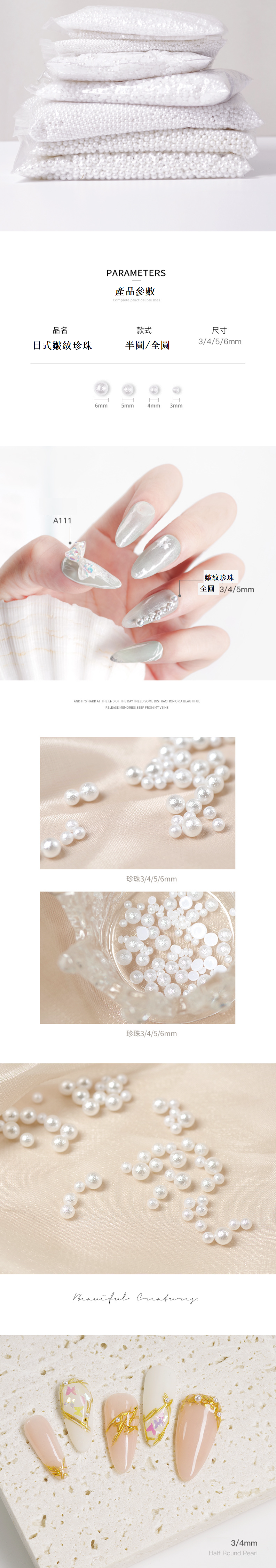 爆款美甲飾品 5mm白色全圓皺紋珍珠(五千粒)