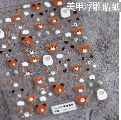 爆款美甲浮雕貼紙(萌寵溫泉-352浮雕貼紙)