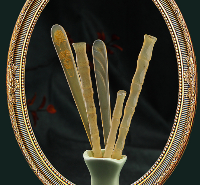 爆款天然牛角古風氣質髮簪(富貴牡丹)(尺寸:簪長18cm)