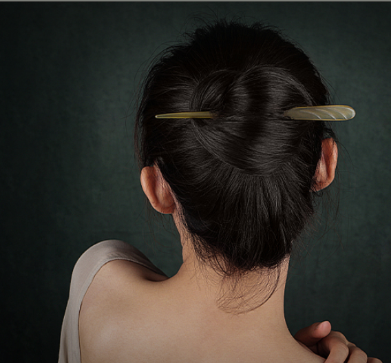 爆款天然牛角古風氣質髮簪(秋葉中款)(尺寸:簪長15cm)