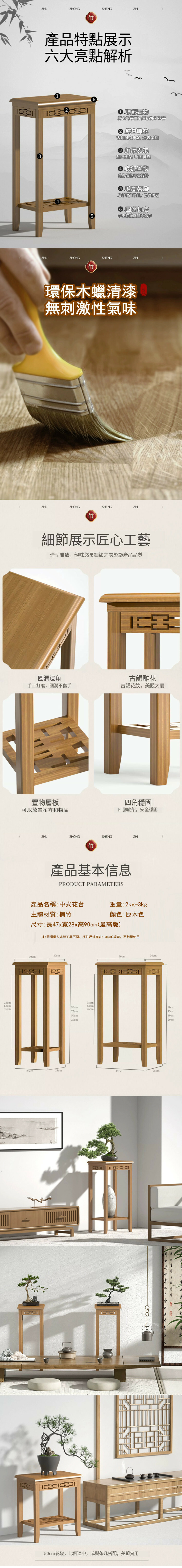爆款新中式仿古花幾花架 落地式置物架 玄關小花台【長方型】50cm