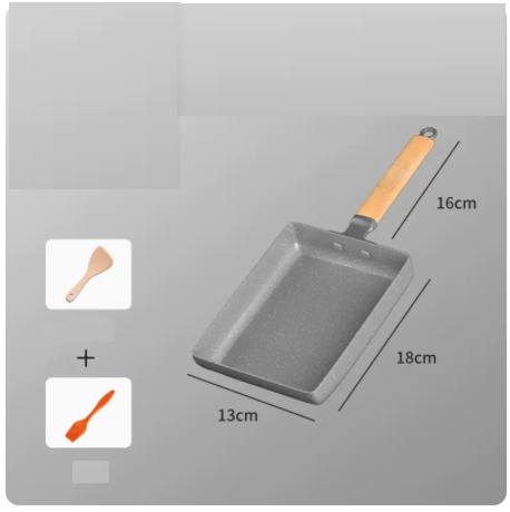 爆款不粘鍋麥飯石平底鍋方形小煎鍋加木鏟油刷明火款(星空灰)