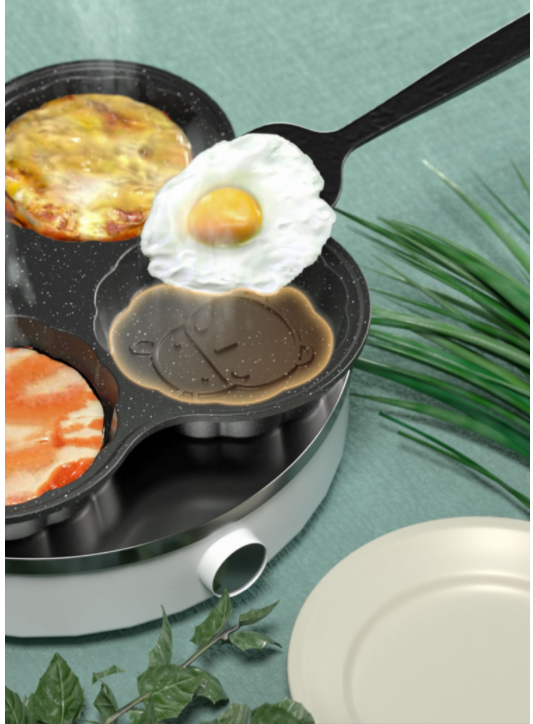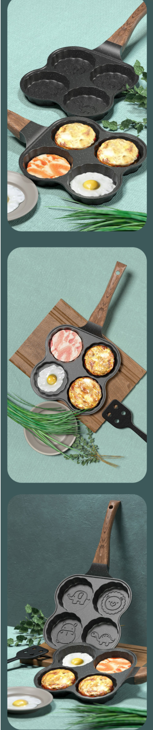 爆款不粘鍋加深小煎鍋早餐蛋堡神器動物圖案四孔煎蛋專用模具加不銹鋼油刷((燃氣電磁爐通用)