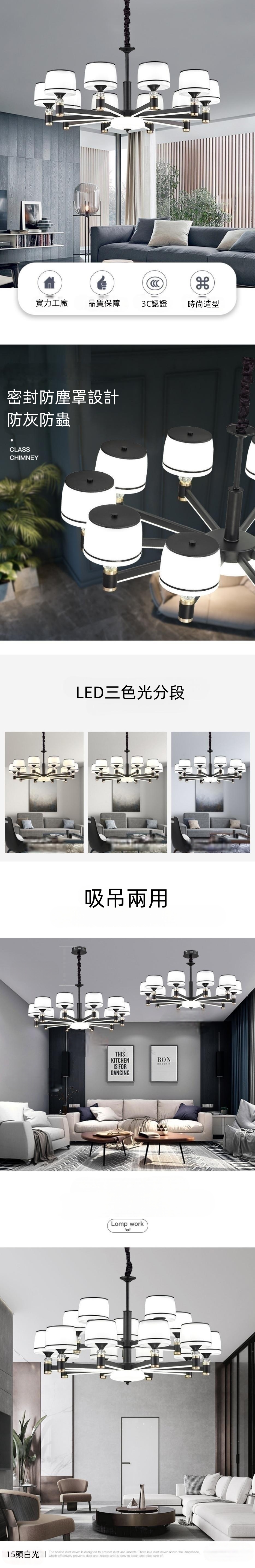 爆款北歐吊燈現代簡約餐廳臥室奢華大氣家用防塵客廳燈飾(15頭+普通家用款+遙控無極+三色變光款+風扇和餐廳不能無極)