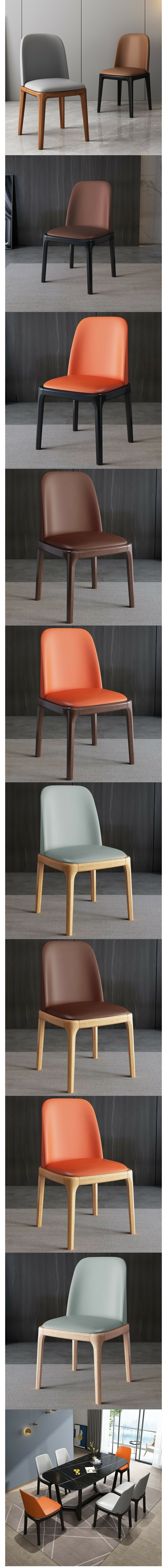 爆款北歐(實木)高級餐椅餐廳飯桌椅子靠背餐廳椅 (實木架黑色+淺灰色PU皮)