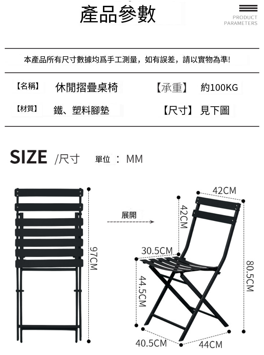 爆款北歐風鐵藝背折疊椅(黃色)(展開尺寸:坐寬30.5CM,高80.5CM)